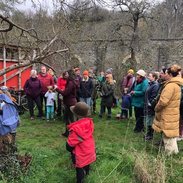 ‘One thousand flowers’ was a project that involved planting 1000 wildflower bulbs on a sunny autumn day in October 2022. Sited within the former Mangotsfield train station on the outskirts of East Bristol the flowers bloomed the following spring, where the Orchard Choir held a public concert to welcome the flowers.