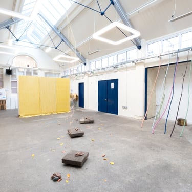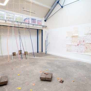 A solo show at StudioKind in Devon. ‘Many leaves turn’ presents new work by Jo Ball. The floor and wall-based pieces are informed by ideas of fragility and resilience, made from materials gathered from the artist’s allotment, home and the city she lives in. Everyday stuff such as string, paper, mud and sticks are used to create forms that refer to holding and containment and their opposites - letting go or overflowing.